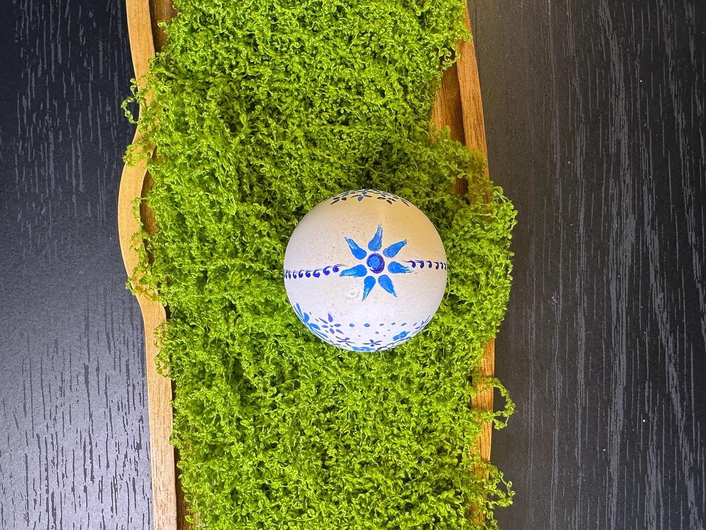 Delicate blue-and-white hand-painted floral design. Various flower shapes are arranged in a balanced, airy composition on an immaculate white shell. The cobalt blue palette is reminiscent of traditional European porcelain.